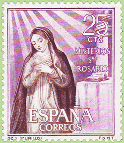 en la vigile de la fête de l’Assomption de Notre-Dame Aujourd’hui l’ASSOMPTION de la Très Sainte Vierge Marie et son couronnement de gloire au Ciel. NB : Cette année, cette fête tombe un vendredi : en conséquence, l’abstinence est suspendue. ![]() 1946 Timbre-poste émis par la Cité du Vatican en 1950 en pleine Année Sainte. 1er d’une série de deux. Pie XII proclame le dogme de l’Assomption de Marie devant la Basilique Saint-Pierre. Assumpta est Maria in Cœlum, Marie a été emportée dans les Cieux. Début de la 1re antienne des Vêpres. Cassicia.com